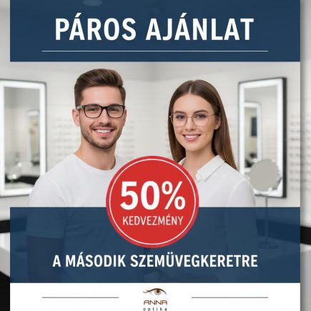 Válassz magadnak vagy a párodnak egy második szemüvegkeretet féláron!Az akció 2026. február 2-től 28-ig tart és minden 30.000 Ft alatti szemüvegkeretre érvényes komplett szemüveg vásárlása esetén.